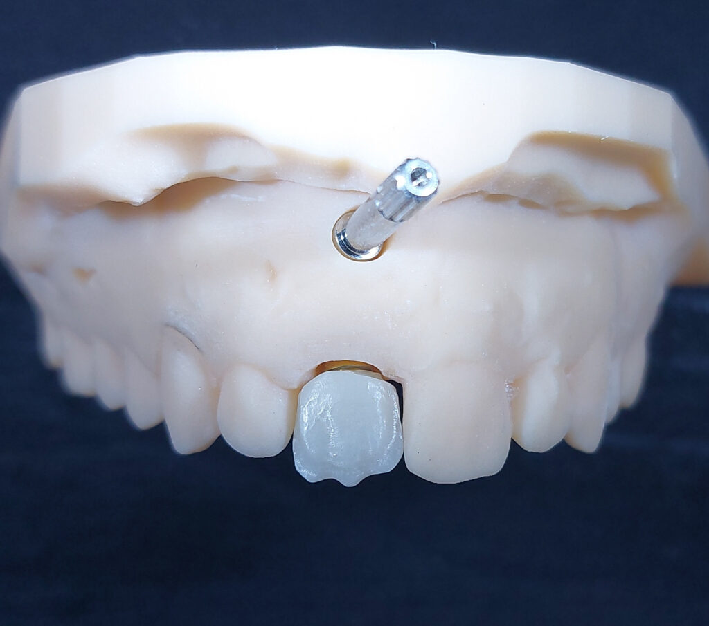 Elemento Zirconia da incollaggio in fase thimble (Una mononitica con riduzione, saranno aggiunte le trasparenze i mammelloni e lo smalto).